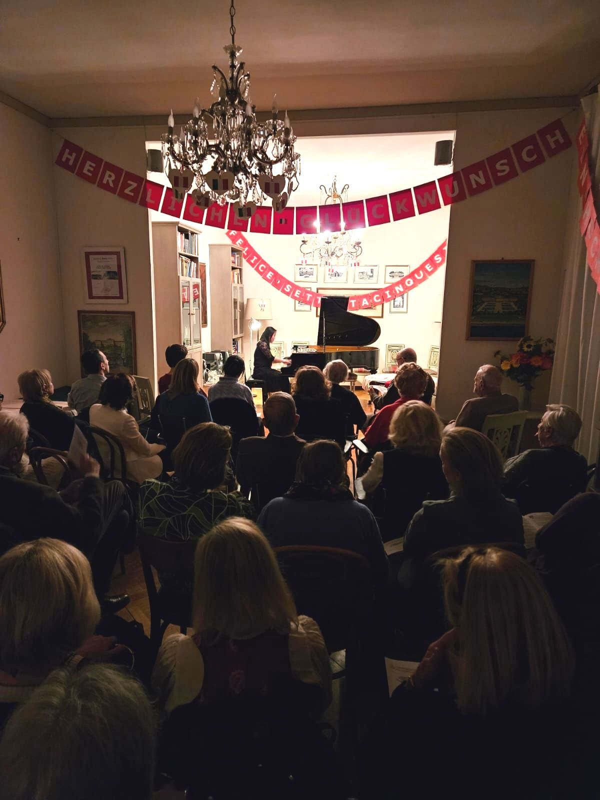 Applausi calorosi al pianista e alla conduttrice che che in modo simpatico e cordiale ha illustrato