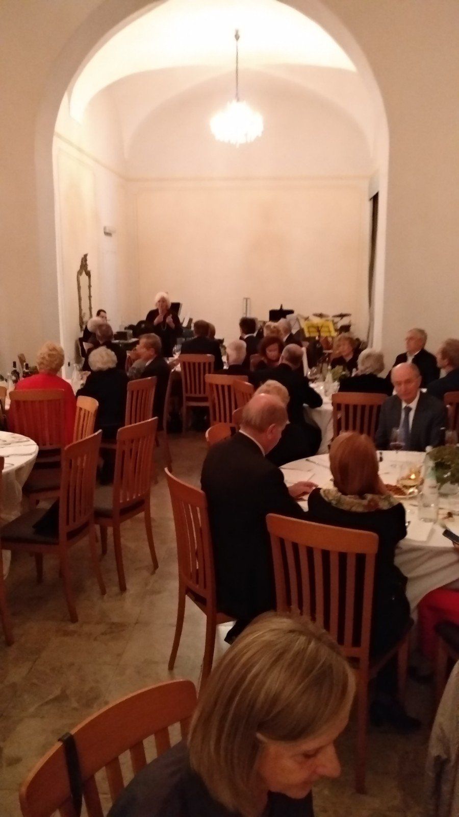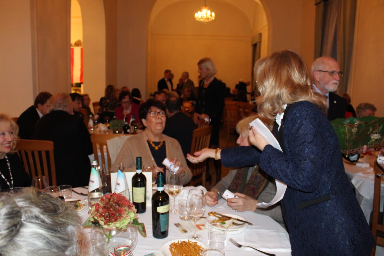 La serata è stata inaugurata con i saluti e gli auguri della nostra presidente Sig.ra de Marinis a tutti i numerosissimi presenti. Con l'occasione ha ricordato, consegnando l'invito alla partecipazione, l'importante evento del Ballo viennese organizzato dall'Austria Italia Club il 26 gennaio 2019 a Palazzo Spinola presso la Società del Giardino di Milano. E' stato altresì ricordato che l'anno 2019 vede il compimento della nostra Associazione del suo 70esimo anno dalla fondazione.
