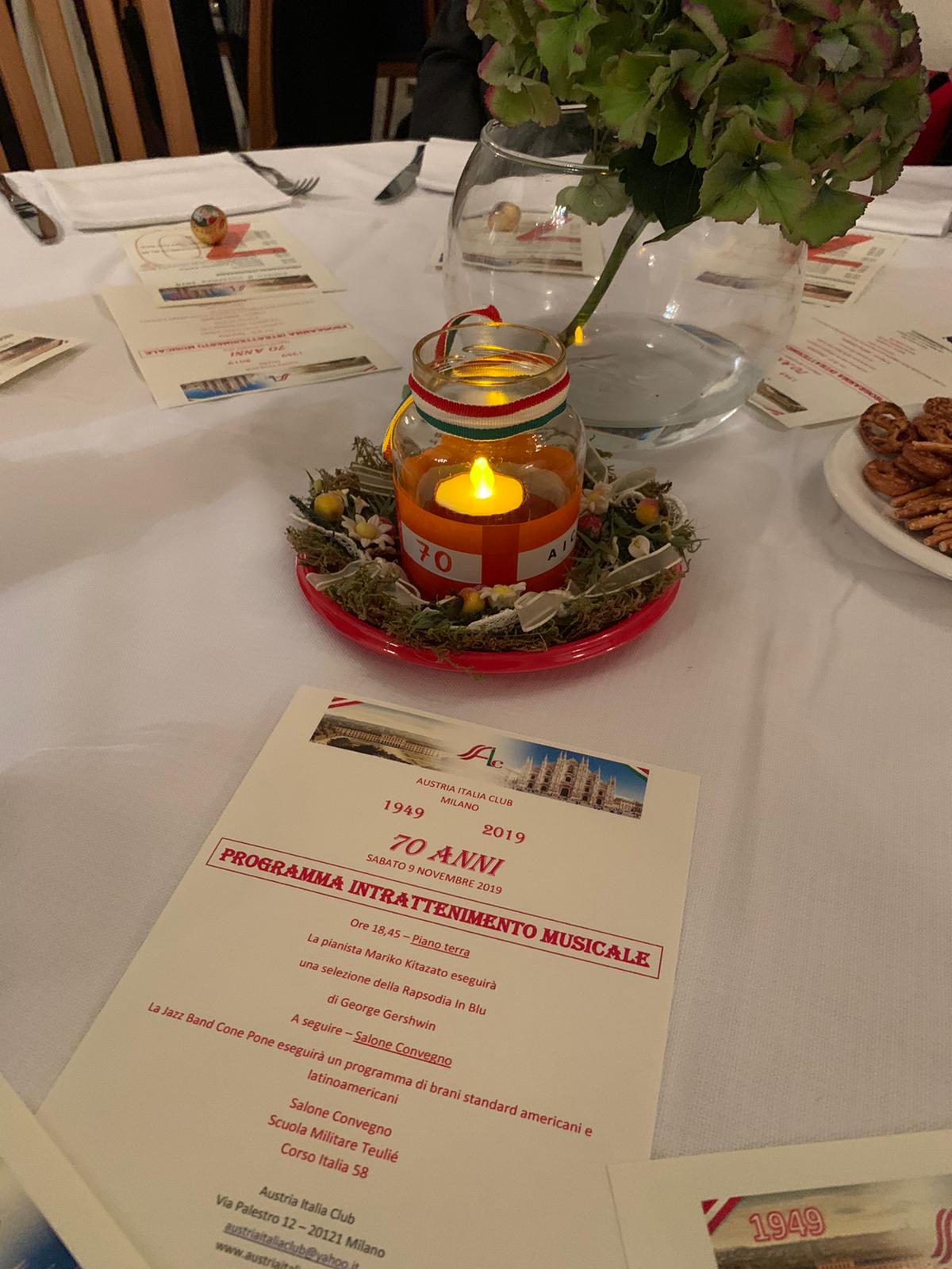 La festa è stata piacevolissima.Un bellissimo concerto di un giovane virtuoso del pianoforte Leonardo Merlini con musiche di Scarlatti, Beethoven,Chopin...Una interessante conferenza del dr. Joergl Staeheli sullo Scultore Antonio Chiattone che realizzò il monumento funebre per Rodolfo d'Austria a Corfù (1895) e il monumento all'imperatrice d'Austria a Montreux (1902), nel Ticino, le tombe delle famiglie Bullo (Faido), Romerio (Locarno) e Reali (Lugano). La Presidente Helga Martinelli ha accolto e salutato gli ospiti milanesi con cordialità e simpatia.